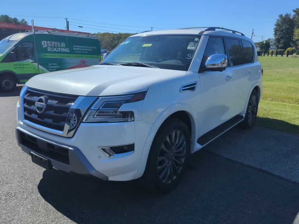 Blind Spot Monitor, Cross-Traffic Alert, Lane Keeping Assist, Child Safety Locks, Electronic Stability Control, Brake Assist, 4-Wheel ABS, 4-Wheel Disc Brakes Safety equipment includes Blind Spot Monitor Nissan Platinum with Aspen White Tricoat exterior and Black interior features a 8 Cylinder Engine with 400 HP at 5800 RPM*.