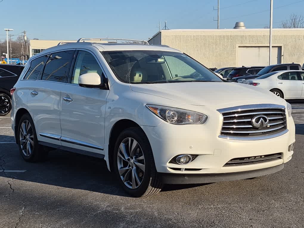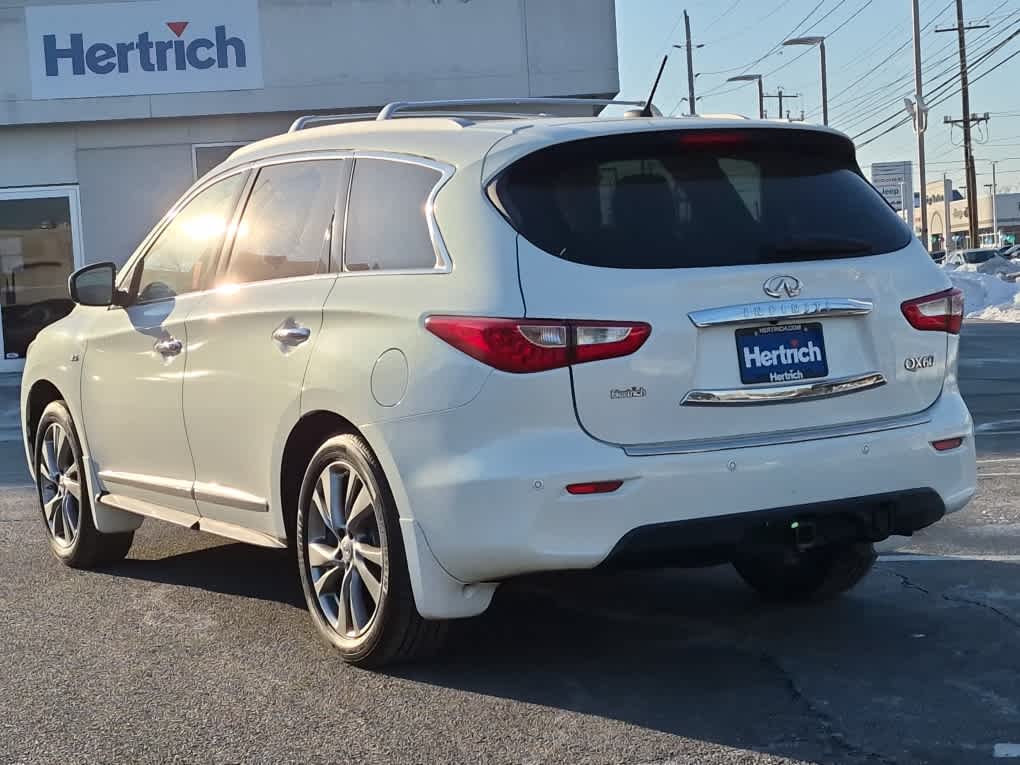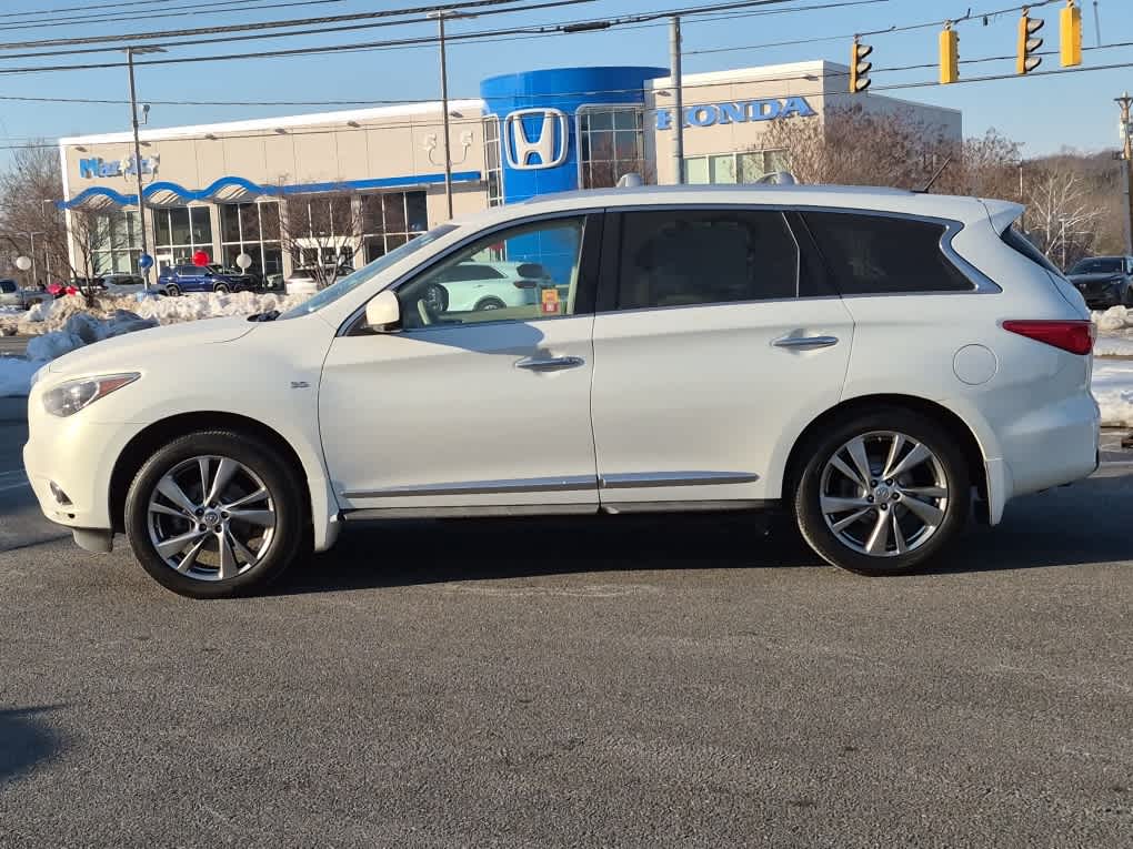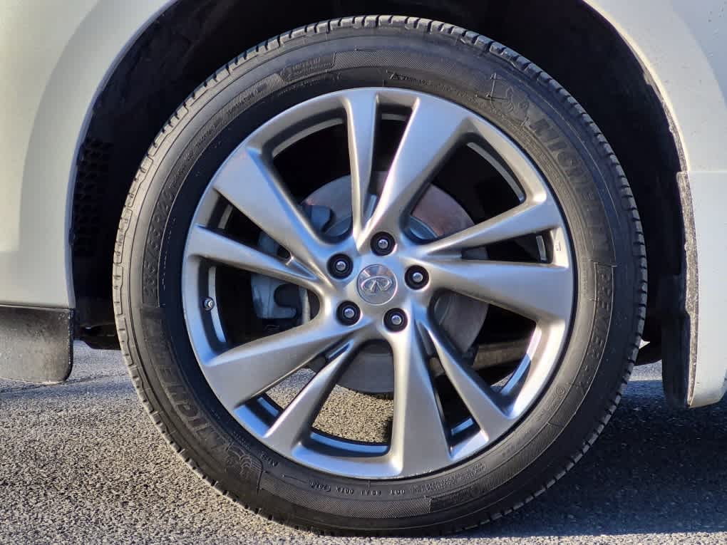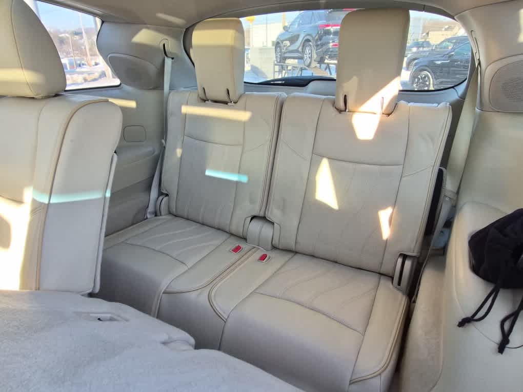Bose Cabin Surround Sound System, 15-speakers and digital 5.1-channel decoding, Wheels: 20 Split 5-Spoke Aluminum-Alloy, Tires: 235/55R20 AS, Second & Third-Row Moonroof w/Power Rear Sunshade, Climate-Controlled Front Seats, Heated 2nd-Row Seats, Outboard only, Advanced Climate Control System (ACCS), auto recirculation, Plasmacluster air purifier and Grape polyphenol filter, Maple Interior Accents, Power Return Third Row Seat Back, streaming audio via Bluetooth® wireless technology, INFINITI Hard Drive Navigation System, 8 WVGA color touch-screen display, lane guidance and 3-D building graphics, and vehicle information systems, XM Navtraffic w/real-time weather and 3-day forecast, Zagat survey restaurant guide, INFINITI connection telematics system including 1-year safety, security and convenience services, INFINITI Voice Recognition, audio, navigation and vehicle information systems, Around View Monitor w/Front & Rear Sonar System, moving object detection, Rain-Sensing Front Windshield Wipers, Blind Spot Warning System (BSW), Active Trace Control, Intelligent Brake Assist (IBA), Forward Collision Warning (FCW), Distance Control Assist (DCA), Front Pre-Crash Seatbelts, Back-Up Collision Intervention, Lane Departure Prevention (LDP), Intelligent Cruise Control, Full-speed range, ECO Pedal, Blind Spot Intervention (BSI), Lane Departure Warning (LDW), wireless remote control, auxiliary audio/video input jacks and rear headphone jacks w/volume control, Utilizes DVD player in front head unit, 120V Power Outlet, Wireless Headphones (2), Dual 7 Color Monitors, Entry & Exit Assist, For drivers seat and steering wheel, Dual Occupant Memory System, For drivers seat, steering wheel and outside mirrors, Enhanced Intelligent Key Memory, Stores an occupant memory position, last used audio, climate control and navigation settings, Remote Engine Start, Heated Steering Wheel, 2-Way Drivers Seat Power Lumbar Support, Radio: AM/FM/CD/DVD w/MP3 Playback Capability, BOSE 13-speaker premium audio system, radio data system (RDS), speed-sensitive volume control and single in-dash CD/DVD player, Outside Mirrors w/Reverse Tilt-Down Feature, Hitch Finisher, Class III Hitch Receiver.