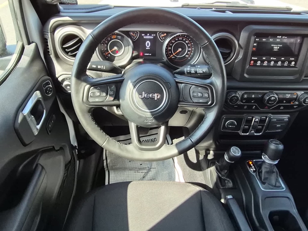QUICK ORDER PACKAGE 22W WILLYS Engine: 2.0L I4 DOHC DI Turbo w/ESS, Transmission: 8-Speed Automatic (850RE), Willys, Mold In Color Bumper w/Gloss Black, Speed Sensitive Power Locks, Automatic Headlamps, 4-Wheel Drive Swing Gate Decal, Black Grille, Willys Hood Decal, Rock Protection Sill Rails, Front 1-Touch Down Power Windows, Power Heated Mirrors, Premium Wrapped Steering Wheel, Security Alarm, Remote Keyless Entry, Sun Visors w/Illuminated Vanity Mirrors, Front LED Fog Lamps, LED Premium Reflector Headlamps, TRANSMISSION: 8-SPEED AUTOMATIC (850RE) Anti-Lock 4-Wheel Disc Brakes, Dana M200 Rear Axle, Selec-Speed Control, BLACK 3-PIECE HARD TOP Freedom Panel Storage Bag, Rear Window Defroster, Rear Window Wiper/Washer, No Soft Top, COLD WEATHER GROUP Heated Steering Wheel, Heated Front Seats, CONVENIENCE GROUP Universal Garage Door Opener, ENGINE: 2.0L I4 DOHC DI TURBO W/ESS. Jeep Willys with Bright White Clearcoat exterior and Black interior features a 4 Cylinder Engine with 270 HP at 5250 RPM*.